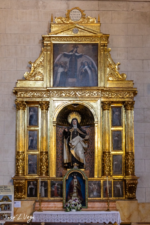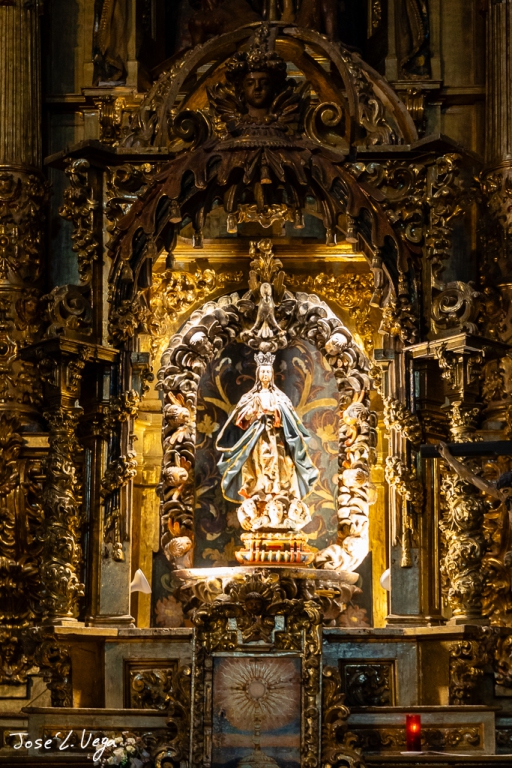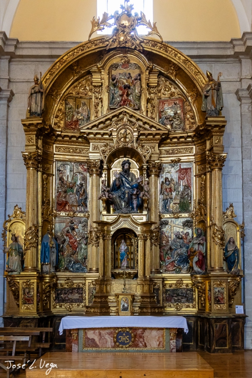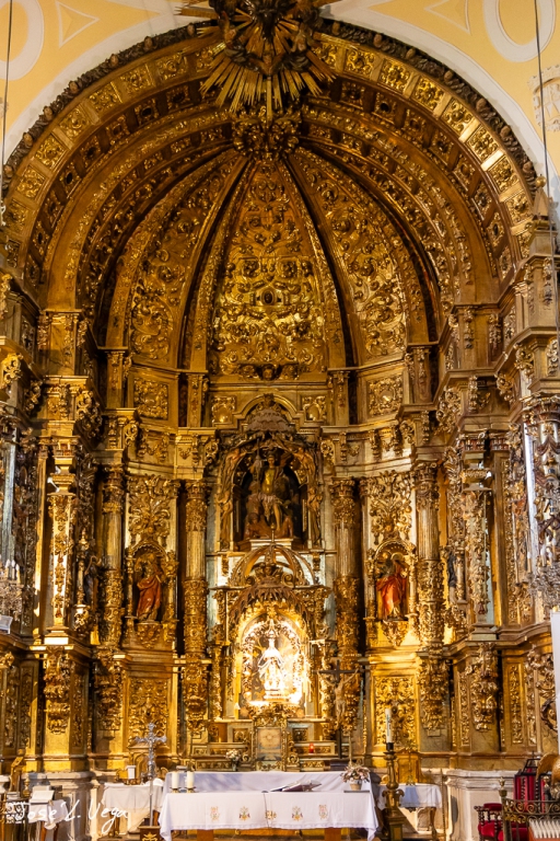 La sacristía es barroca y se construye en 1.775 y al igual que los retablos que soyn todos ellos barrocos del siglo XVII y XVIII. El coro es de 1.715 y la sillería que se conserva es de la antigua Iglesia de San Salvador.