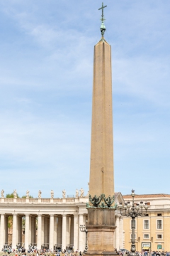 La plaza tiene una forma elíptica y está rodeada por una monumental columnata, compuesta por 284 columnas y 88 pilares, que simbolizan los brazos extendidos de la Iglesia acogiendo a los fieles. En el centro se alza un antiguo obelisco egipcio de 25 metros de altura, traído a Roma por el emperador Calígula en el año 37 d.C. Flanqueando el obelisco hay dos fuentes, una también diseñada por Bernini y otra por Carlo Maderno.