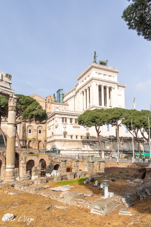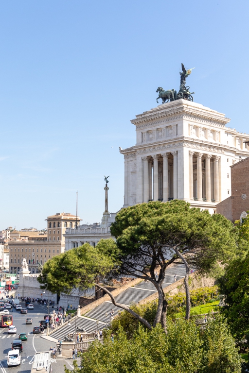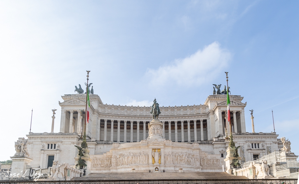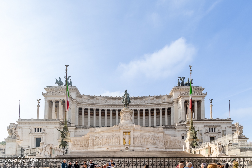 Situado en la Piazza Venezia, el monumento fue diseñado por el arquitecto Giuseppe Sacconi y su construcción comenzó en 1885, aunque no se completó hasta 1925. El Vittoriano está compuesto por mármol blanco de Botticino, que le confiere un aspecto resplandeciente y monumental, contrastando con la arquitectura circundante de la antigua Roma.