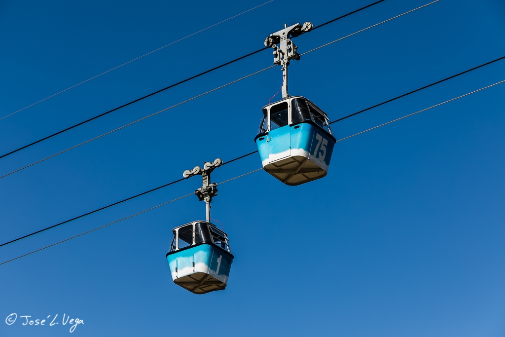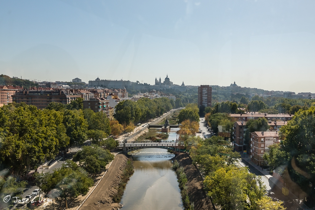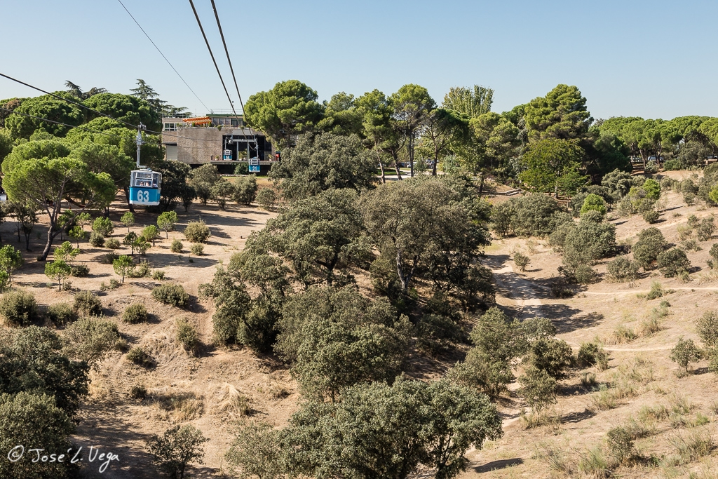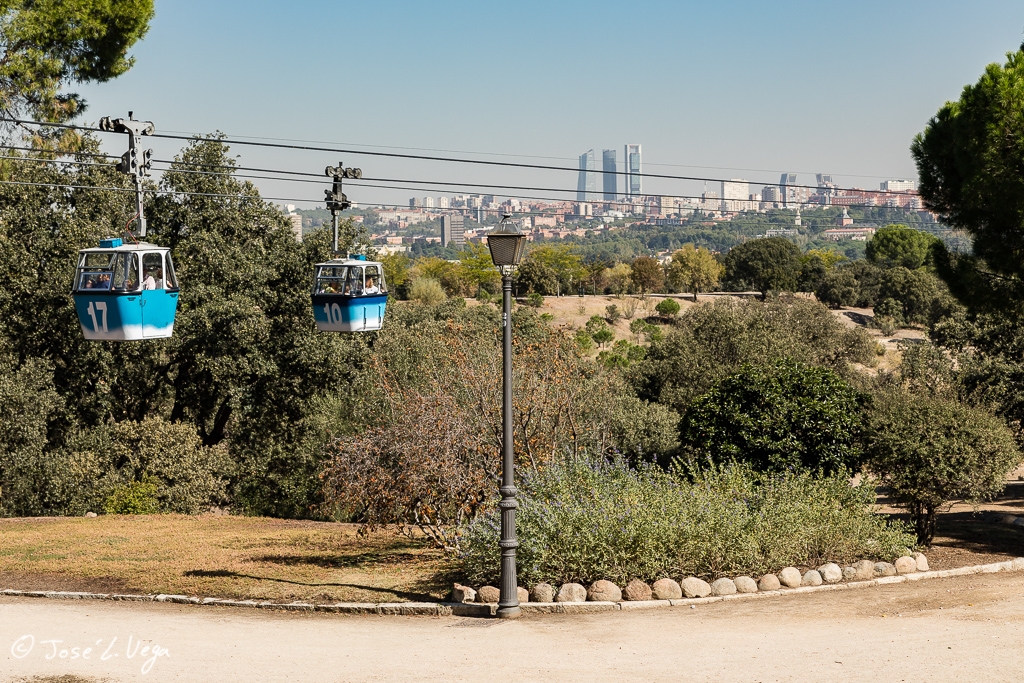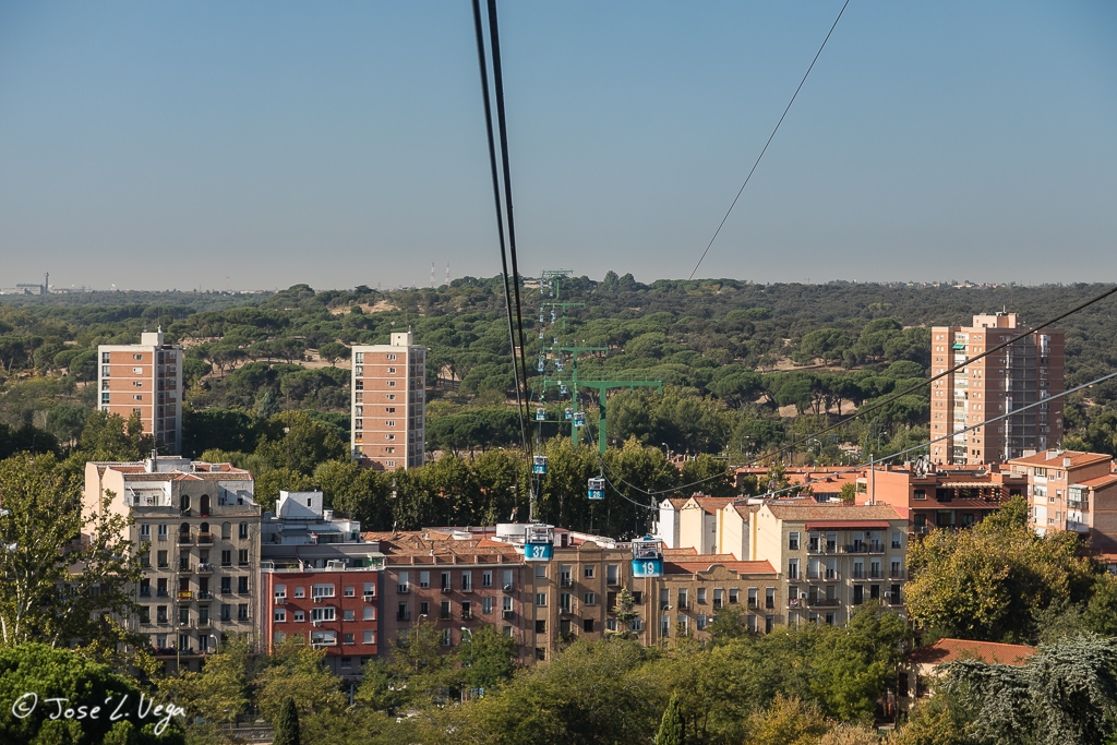 A pesar de haber elegido el peor día posible, debido, por un lado, a la alta contaminación que tiene estos días Madrid y, por otro, a la hora en la que el sol está casi de frente, he visitado el Teleférico.